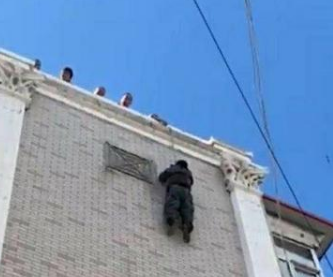 當消防員趕到時,發(fā)現(xiàn)該名工人的安全繩已經(jīng)滑脫到了腋下位置,立刻告訴他不能用手拽繩索,只能使用雙手向下用力夾緊,才能保證不會掉下去,同時還在樓頂固定了著力點,拋下了兩根安全繩,供工人和參與營救的消防隊員來使用,經(jīng)過多名救援人員的共同努力,遇險工人慢慢從扶梯上走了下來。