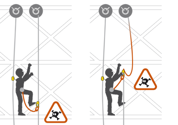 手升又稱為連接牛尾,牛尾為使用者提供了便利性和移動性,但也帶來了風險,使用者稍加疏忽,可能會位于抓繩器之上,或牛尾松弛,這就帶來了潛在的墜落風險。和胸升一樣,我們需要盡可能保持其受力狀態(tài),以減少自由墜落的可能。
