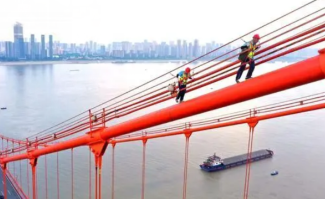 百米高空的檢修作業(yè)所面臨的是高空墜落和高溫中暑的雙重危險(xiǎn),為了確保工作的安全開展,橋梁管理工作者們佩戴防墜器和安全繩,一步一步的爬上了高點(diǎn),整個(gè)過程讓人心驚膽戰(zhàn),站在百米高空,防墜器成為了它們的唯一生命線,對(duì)此我們唯有用仰視的目光來欣賞這道亮麗的風(fēng)景線。